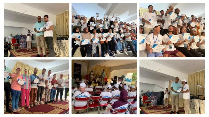 وفي ختام هذا الحفل، تم توزيع شواهد المشاركة على المتطوعين الشباب، تنويها وتقديرا لمشاركتهم في هذا البرنامج، وكذا تم تقديم شواهد تقديرية للأطر التي سهرت ليل نهار لإنجاح المحطة الأولى من محطات البرنامج الوطني للتطوع. ليختتم الحفل في أجواء احتفالية متميزة استحضرت دروس وعبر عيد العرش المجيد الذي تزامن الحفل الختامي مع احتفال بلادنا به.