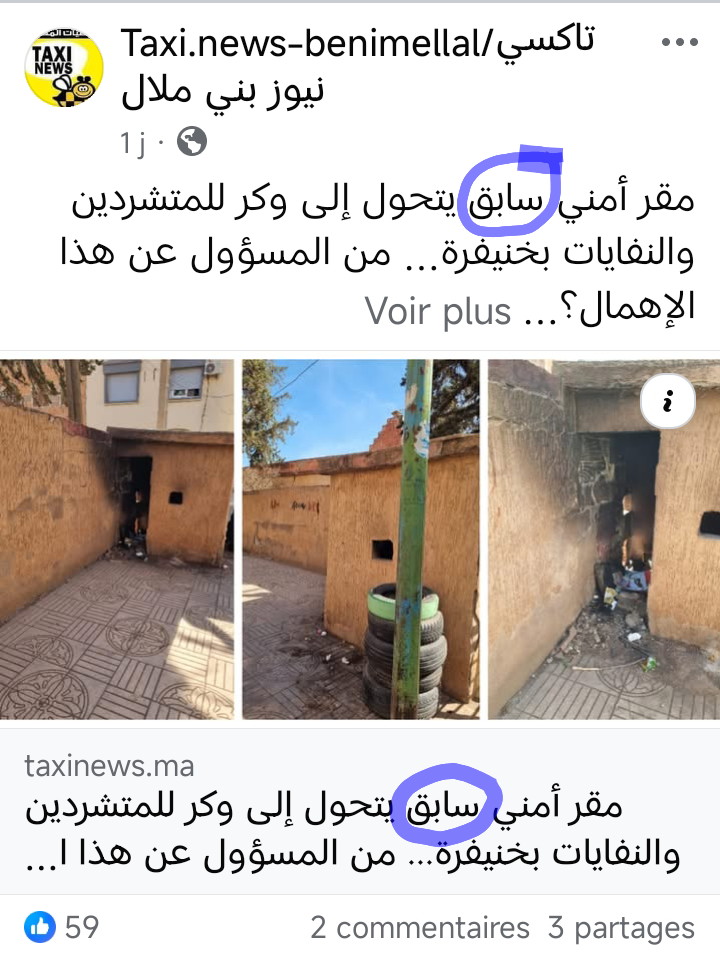 هذا، ونجدد، بهذه المناسبة، مناشدتنا إلى السلطات المعنية بأن المقر الأمني السابق المهجور – كما توضح الصور الجديدة- يحتاج إلى التفاتة لتنظيفه ومحاربة ظاهرة التشرد داخله.