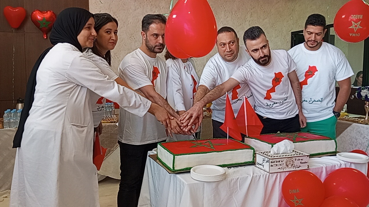 وشارك في الاحتفال جميع مكونات المصحة من أطباء وممرضين وأطر إدارية، الذين ارتدوا ملابس موشحة بخريطة المملكة المغربية، تعبيرا عن تعلقهم بالوطن ووحدته الترابية، كما جرى تقاسم حلوى مزينة بالعلم المغربي، في لحظة رمزية جسدت روح الفخر والوفاء لتاريخ الوطن المجيد.