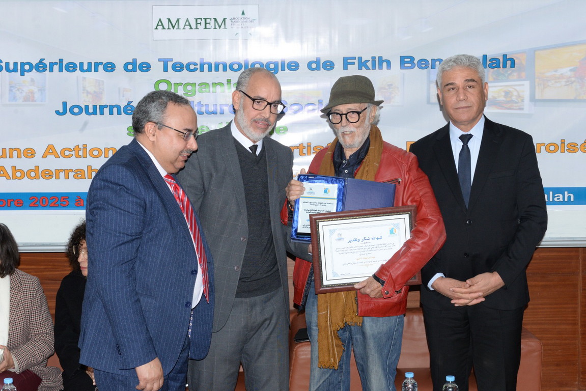 نظمت المدرسة العليا للتكنولوجيا بالفقيه بن صالح يوم الخميس ١١ دجنبر 2025 ندوة حول الثقافة والمجتمع بحضور الكاتب العام لعمالة إقليم الفقيه بن صالح و باشا مدينة الفقيه بن صالح ومدير المدرسة العليا للتكنولوجيا ونائب رئيس جامعة السلطان مولاي سليمان المكلف بالشؤون البيداغوجية و رؤساء المصالح الخارجية والهيئات السياسية والجمعوية والثقافية والنقابية والصحافية.