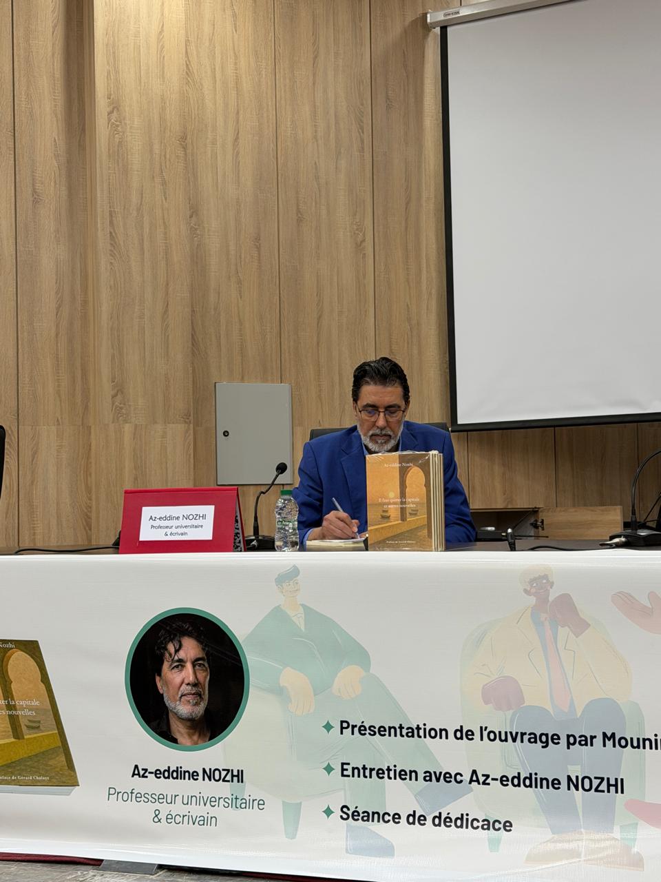ويأتي هذا النشاط العلمي في إطار الجهود الأكاديمية والثقافية التي يبذلها مختبر الأبحاث التطبيقية و الرامية إلى تعزيز حضور الأدب وتشجيع الحوار حول قضايا الكتابة والإبداع، حيث تم تقديم كتاب “Il faut quitter la capitale et autres nouvelles” للكاتب الجامعي والروائي عز الدين نزهي.