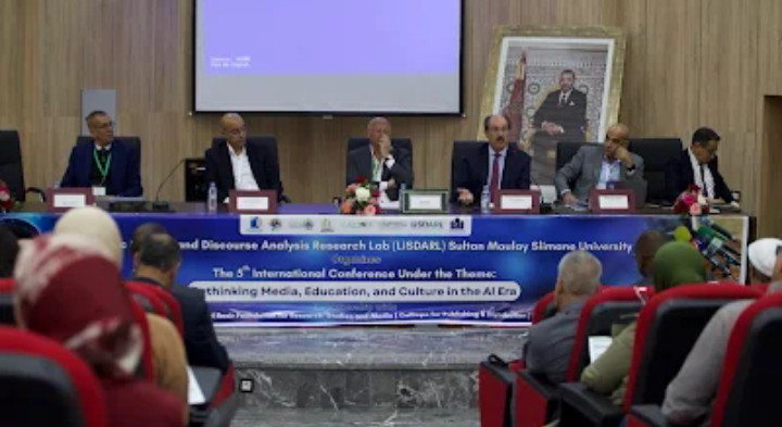 احتضنت كلية الآداب والعلوم الإنسانية ببني ملال، أشغال الندوة الدولية الخامسة التي نظمها مختبر الدراسات اللسانية وتحليل الخطاب بشراكة مع مؤسسة محمد بصير للأبحاث والدراسات والإعلام، والمجلس الجماعي لبني ملال، يومي 24 و25 أبريل 2026، تحت شعار: “إعادة النظر في الإعلام والتربية والثقافة في عصر الذكاء الاصطناعي”، وذلك بمشاركة ثلة من الأساتذة الباحثين والخبراء من داخل المغرب وخارجه.