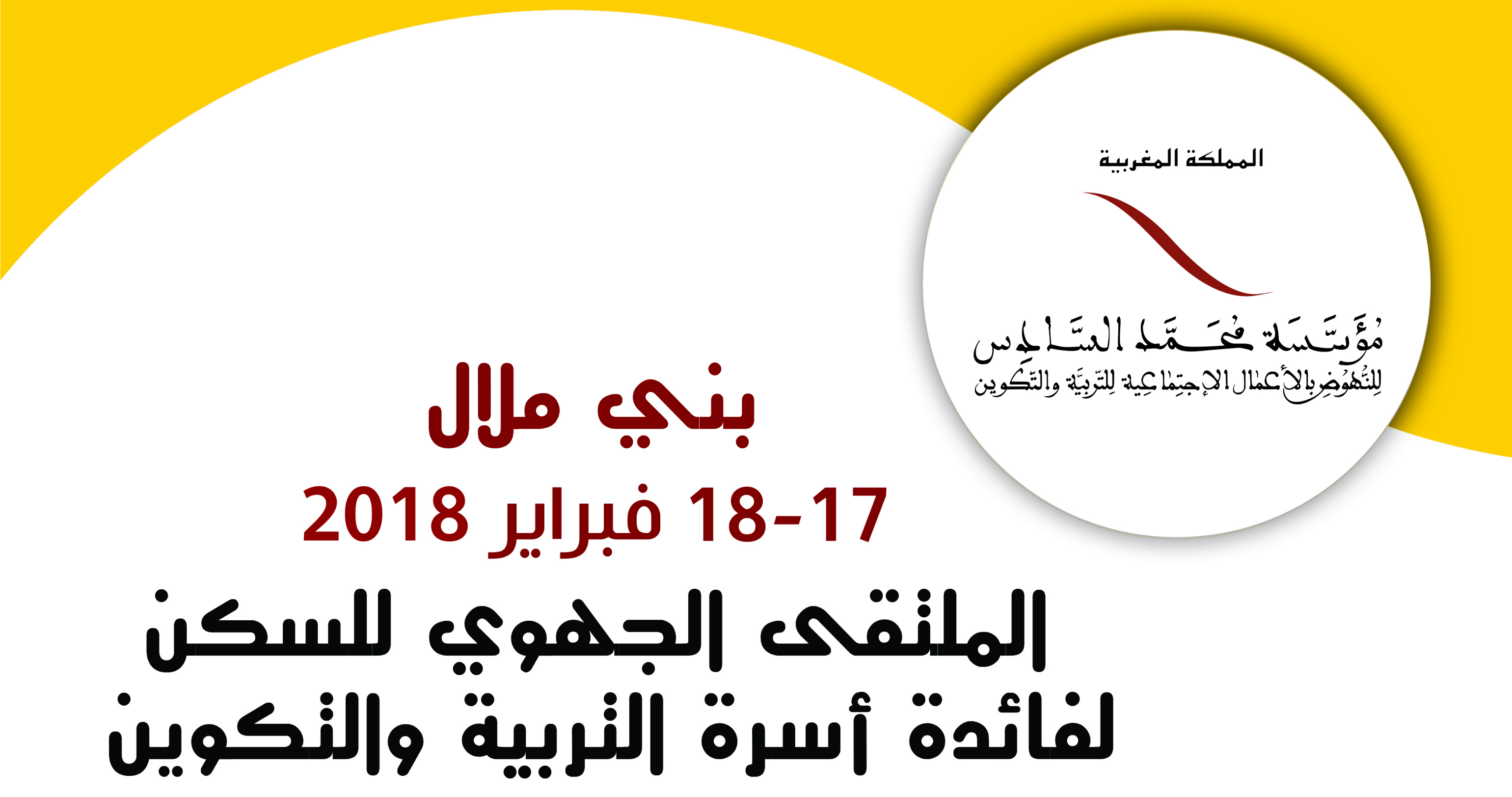 تنظم مؤسسة محمد السادس للنهوض بالأعمال الاجتماعية، بتنسيق مع وحدتها الإدارية ببني ملال، الملتقى الجهوي للسكن في دورته 14، وذلك يومي 17 و 18 فبراير الجاري، بالقاعة المغطاة للرياضات التابعة لوزارة الشباب والرياضة بمدينة بني ملال.