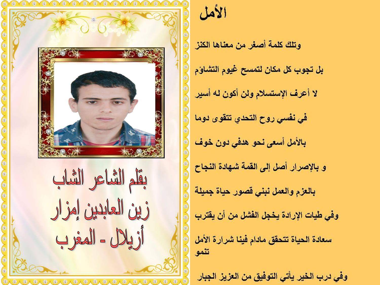 بقلم الشاعر الشاب زين العابدين إمزار . أزيلال –