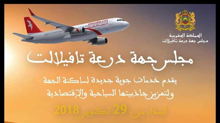 في مبادرة استحسنها السكان تنم عن حسن التسيير والتدبير لشؤون الجهة ، بادر مجلس جهة درعة تافيلالت إلى الاعلان عن عروض مغرية للتنقل عبر الطائرة من زاكورة والراشيدية في اتجاه فاس أو العكس، وتأتي هذه الخطوة في اطار تقديم المجلس المذكور خدمات جوية جديدة لتعزيز جاذبية الجهة من الناحية السياحية والاقتصادية وتشجيع باقي المواطنين على زيارة جهة درعة تافيلالت.