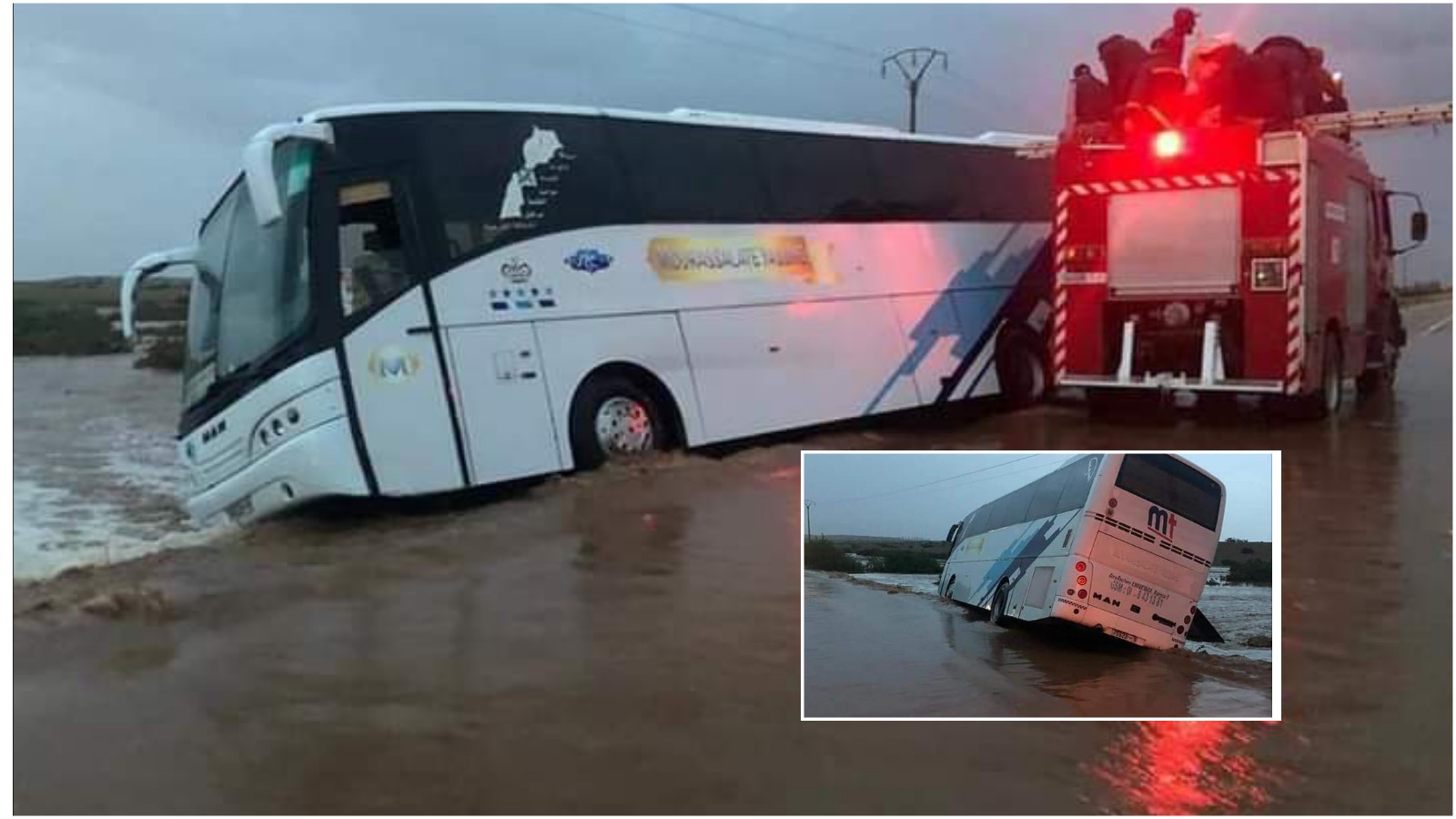 ذكرت مصادر للجريدة ان سيارة خفيفة و حافلة لنقل المسافرين انزلقتا بفعل السيول التي عرفتها الطريق بين وادي زم والفقيه بن صالح ، ولحسن الحظ ان الحافلة لم تنقلب بالكامل وسط المياه الجارفة .