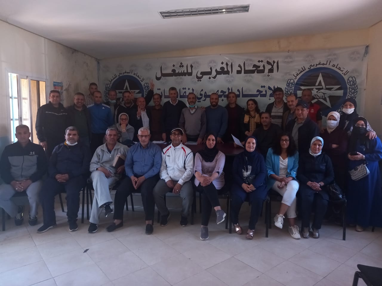 بدعوة من مكتب فرع بني ملال للجامعة الوطنية لعمال وموظفي الجماعات المحلية ،انعقد جمع عام بمقر الاتحاد المغربي للشغل ببني ملال يوم الاحد 02 مايو 2021 على الساعة الحادية عشر صباحا من اجل تدارس قضايا الشغيلة بالجماعة وكذا تجديد مكتب الفرع، تحت اشراف جمال اوزين الكاتب الجهوي للاتحاد نقابات بني ملال و عبدالرحمان عاجي الكاتب الجهوي (للج و ع م ج م) بني ملال خنيفرة و بعد عملية التصويت بشكل ديمقراطي جاءت تشكيلة المكتب كالتالي :